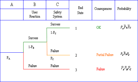 This analysis yields listing of different outcomes for an accident progression, and conditional probability of each accident progression scenario.